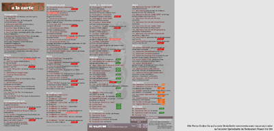 Hier sind unsere doppelseitige Speisekarte zum Mitnehmen im Restaurant.